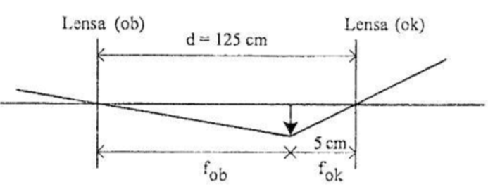 Berikut ini adalah diagram pembentukan bayangan oleh teropong bintang. Perbesaran bayangan untuk mata tidak berakomodasi adalah ....