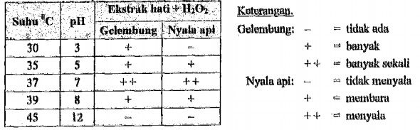 Berdasarkan data di atas, dapat disimpulkan enzim bekerja optimal ketika ....