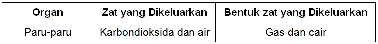 Berikut ini adalah tabel organ ekskresi dan zat yang dikeluarkannya, lengkapi tabel di bawah ini dengan benar!