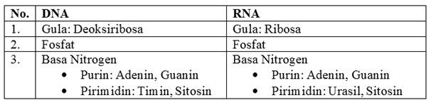 Bagian yang membedakan antara penyusun DNA dan RNA adalah...