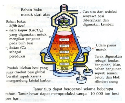 Pengolahan besi menggunakan proses yang ditunjukkan oleh nomor...