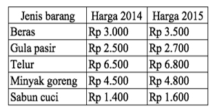 Berdasarkan data di atas, indeks harga tahun 2015 adalah....