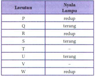 Berikut ini data pengamatan daya hantar listrik beberapa larutan dalam air.