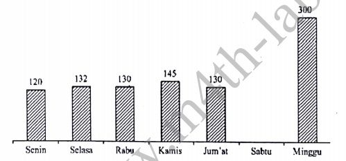 Jumlah pengunjung seluruhnya 1.182 orang. Jumlah pengunjung pada hari Sabtu adalah ...