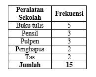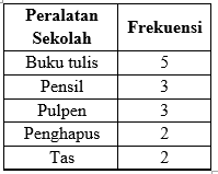 Berikut ini data peralatan sekolah yang dimiliki Rere :