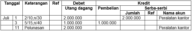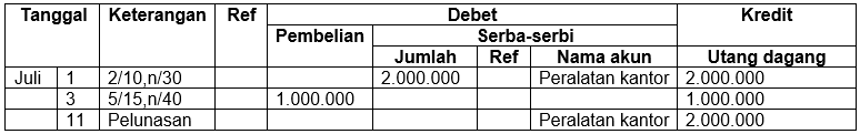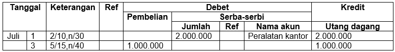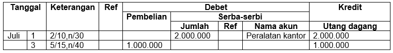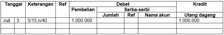 Pencatatan transaksi pada jurnal pembelian yang benar adalah ....