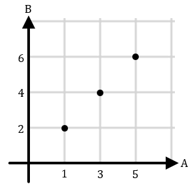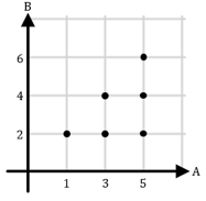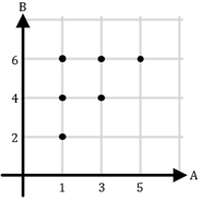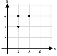 Berikut ini diagram kartesius yang menyatakan relasi “satu kurangnya dari” untuk relasi dari himpunan A = {1, 3, 5} ke himpunan B = {2, 4, 6} adalah ....