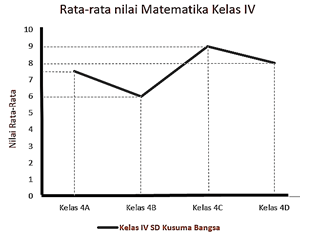 Berikut ini merupakan diagram garis yang menunjukkan nilai rata-rata kelas IV SD Kusuma Bangsa.