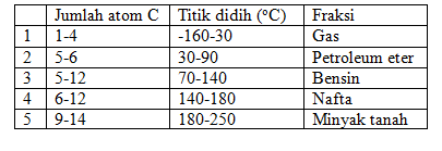 Berikut ini merupakan fraksi-fraksi minyak bumi :