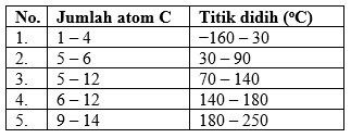 Dari tabel di atas yang merupakan fraksi minyak tanah adalah....
