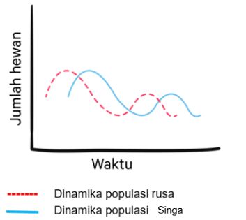 Berikut ini merupakan grafik hipotesis yang menggambarkan dinamika populasi antara predator dan mangsanya