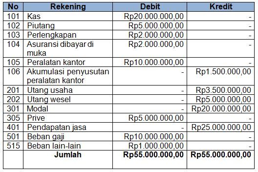 Berikut ini merupakan neraca saldo rekening-rekening perusahaan jasa konsultan