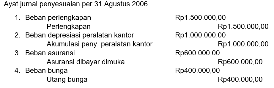 Data untuk membuat penyesuaian per 31 Agustus 2006 sebagai berikut.