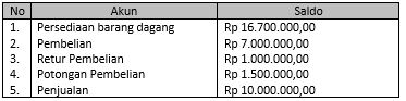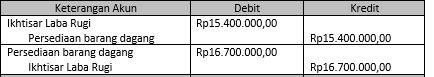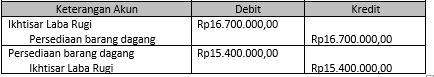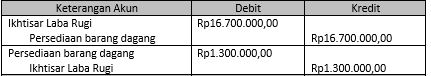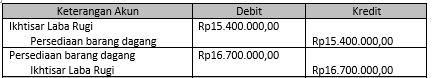 Berdasarkan hasil pengecekan fisik, persediaan barang dagang yang tersisa pada tanggal 31 Dcsember 2011 Rp15.400.000,00.
