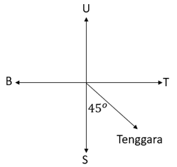 Berikut ini pernyataan yang benar tentang arah tenggara adalah ….