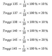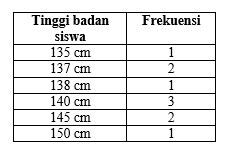 Berikut ini tinggi badan 10 orang siswa kelas 7 SMP Nasional :