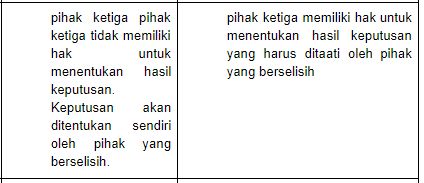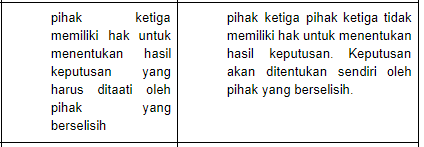 Berikut ini yang menjadi perbedaan anatara arbitrase dengan mediasi adalah....
