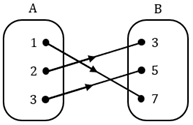 Perhatikan bahwa fungsi korespondensi satu-satu dari himpunan A ke himpunan B adalah fungsi yang seluruh anggota himpunan A berpasangan tepat dengan satu anggota himpunan B dan seluruh anggota himpunan B juga berpasangan tepat dengan satu anggota A.