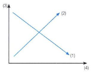 Pada gambar di samping, garis yang menjelaskan jumlah barang adalah ditunjukkan nomor ....