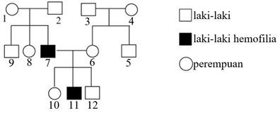 Berikut merupakan peta silsilah dalam suatu keluarga yang beberapa laki-lakinya mengidap hemofilia.