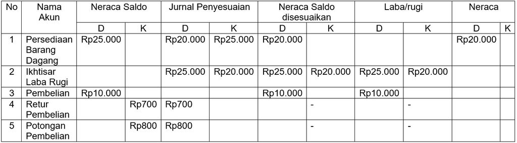 Berikut sebagian data kertas kerja perusahaan dagang.
