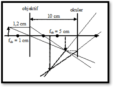 Berkas pembentukan bayangan pada mikroskop dapat digambarkan sebagai berikut.