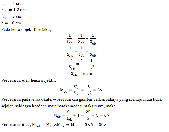 Perbesaran yang dihasilkan mikroskop adalah sebesar ….