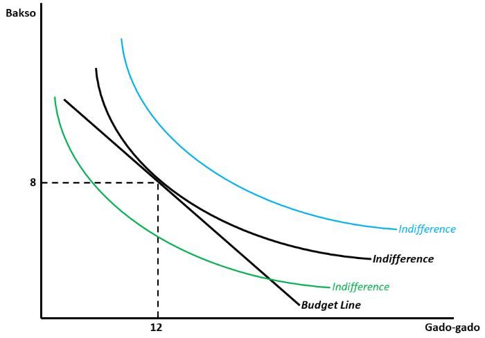 Bersinggungnya kurva indifference dengan kurva garis anggaran konsumen dinamakan…