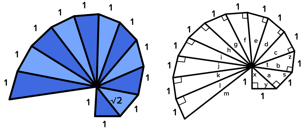 Siput pada ilmu matematika adalah salah satu binatang yang langka dan menarik untuk diteliti. Rumah siput merupakan contoh yang memiliki kemiripan dengan bentuk Spiral Theodorus. Hal ini dapat dilihat dari gambar berikut: