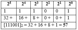 Bilangan desimal dari 111001 adalah …