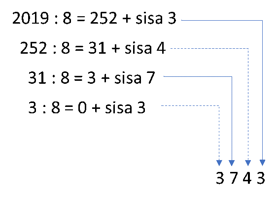 Bilangan oktal dari bilangan desimal 2019 adalah…