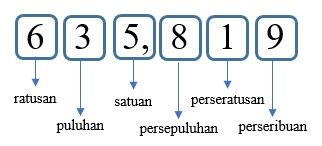 Bilangan yang menempati nilai tempat perseratusan pada bilangan desimal 635,819 adalah ....