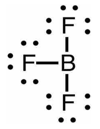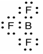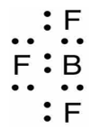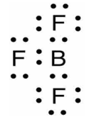 Boron trifluorida adalah suatu senyawa anorganik dengan rumus kimia . Gas ini bersifat toksik, tak berwarna, dan berbau menyengat. Manakah struktur Lewis yang tepat dari molekul ? (nomor atom B = 5 ; F = 9)