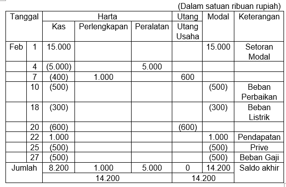 Buatlah analisis mengenai akun yang terpengaruh beserta jumlahnya berdasarkan transaksi berikut.