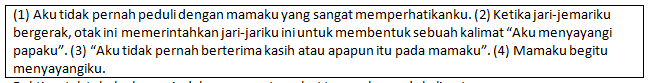 Bukti watak tokoh aku egois dalam cerpen tersebut tergambar pada kalimat nomor...