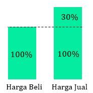 Butet membelikan sebuah jaket untuk Cecep seharga Rp180.000,00. Ternyata jaket terebut terlalu kecil untuk Cecep, sehingga Butet menjualnya kembali dengan menawarkan diskon 40% pada temannya. Jika Butet ingin tetap mendapat keuntungan 30%, maka harga yang dia tawarkan adalah ….