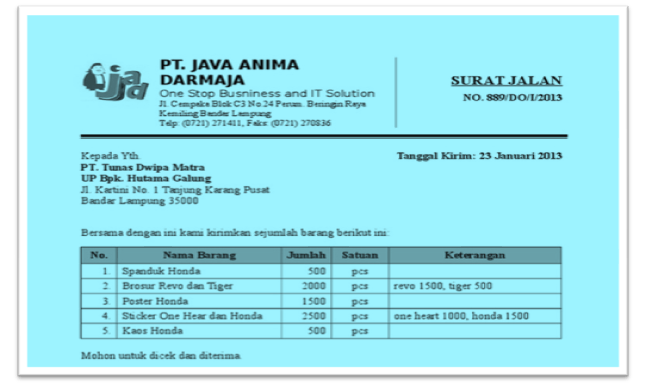 Cermatilah surat dagang berikut untuk menjawab soal 1 dan 2.