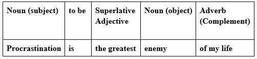 Superlative degree adalah bentuk yang kita gunakan ketika membandingkan lebih dari dua hal yang memiliki tingkat kualitas berbeda, dimana sifat salah satu diantara benda-benda melebih sifat yang lainnya dan menghasilkan makna “yang paling …(kata sifat)..”