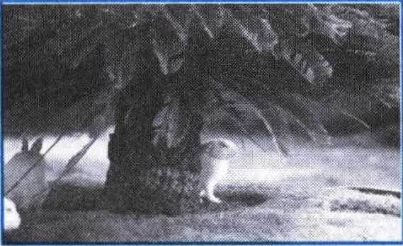 The rabbits are ____ the palm.