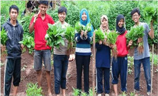 Most of them are holding vegetables in their hands.