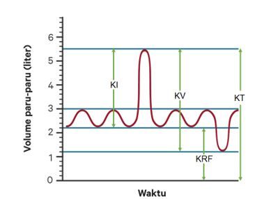 Berdasarkan grafik yang diperoleh, kapasitas residu fungsional dan kapasitas paru-paru total yang dimiliki oleh Citra adalah ....