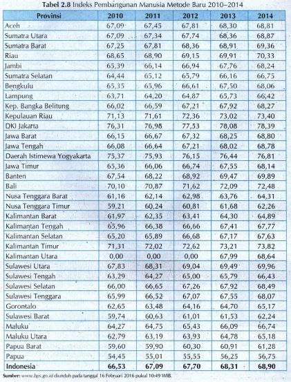 Perhatikan indeks pembangunan manusia Indonesia tahun 2010-:2014 pada tabel berikut.