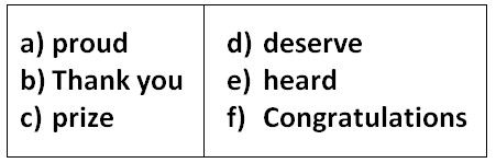 Shinta: I (1) ____ you won the first (2) ____ for your short story. (3) ____.