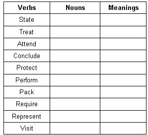 Bentuk kata benda dan terjemahan dari pilihan kata yang tersedia pada tabel adalah sebagai berikut