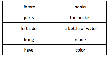 Kalimat "I put my ____ (4) and pencil case in this part." bermakna Aku menyimpan ____ ku dan tempat pensil di bagian ini.