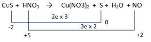 3CuS + 6HNO3 → 3Cu(NO3)2 + 3S + 4H2O + 2NO