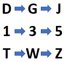 Lalu, huruf T akan menjadi huruf W ketika digeser sebanyak tiga huruf berikutnya. Begitu pula dengan huruf W menjadi huruf Z.