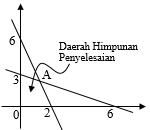 Daerah yang diarsir adalah gambar himpunan penyelesaian suatu program linear. Untuk soal ini mana saja bentuk – bentuk dibawah ini mencapai maksimum di A.