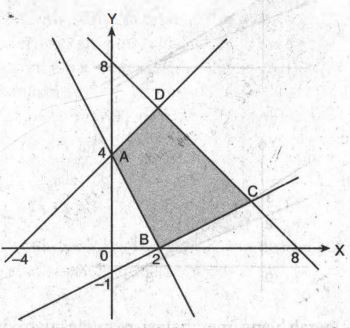 Daerah yang diarsir berikut merupakan himpunan penyelesaian dari suatu sistem pertidaksamaan linear.
