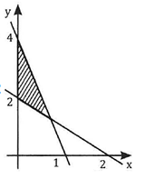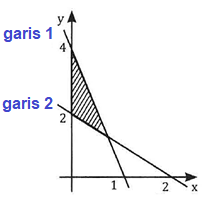 Daerah yang diarsir pada gambar di bawah merupakan himpunan penyelesaian sistem pertidaksamaan ....